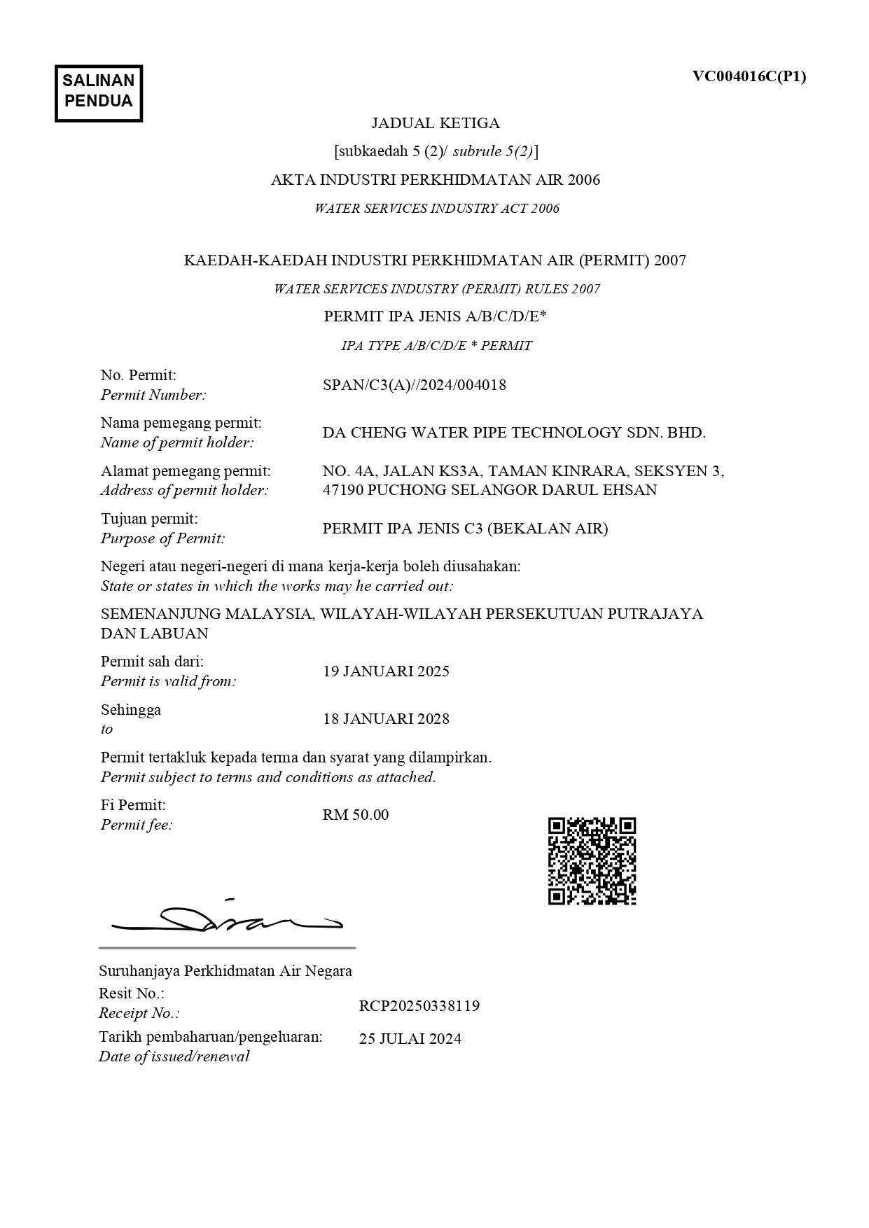 About Da Cheng Water Pipe Technology Sdn. Bhd.